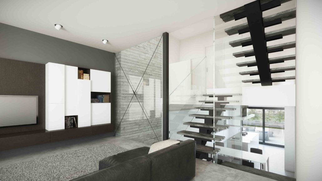 The tunnel of light surrounding the open staircase and the split-level configuration maximize the home’s space. There is a spare room/gym and a terrace on the street side. The backyard and op terrace is sheltered by a JNCN pergola for added privacy in an urban garden setting.