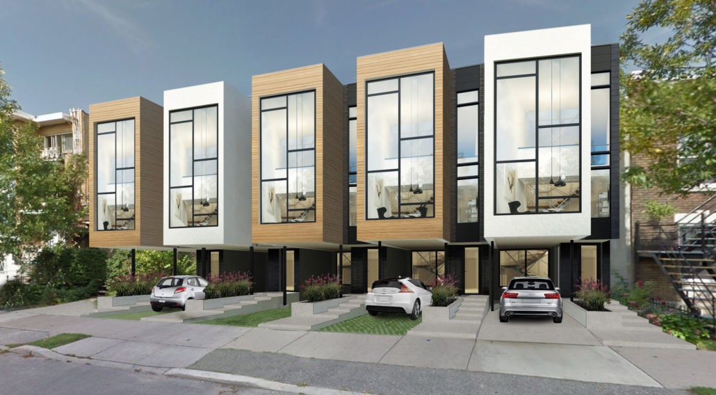 From the outside, the remarkable features are a large cantilever that forms a covering for the car port and smaller one extending from the living room to cover the entrance. Since the kitchen and dining area are on the top floor, we incorporated a service elevator from the main floor laundry room to the pantry on the upper floor. The social spaces have much more light because they are on the top floor, and natural light floods in through double-height living room windows.