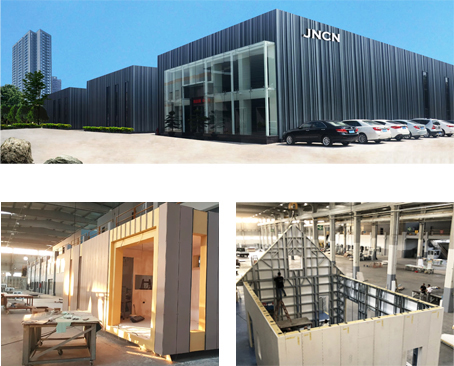 JNCN HOMES Covers about over 30,000 square meters, with over 600 skilled workers, JNCN HOMES now runs two manufacturing bases and one research and development center, while possess one fully automatic powder-coating line and two color steel sandwich panel production lines we have a Production capacity for 1 million square meter light steelhouse annually. We have now succeeded in passing ISO90012008 Enterprise Quality Management Authentication, and besides, our products also obtain Guangdong Province's Outstanding Product Quality Certificate.