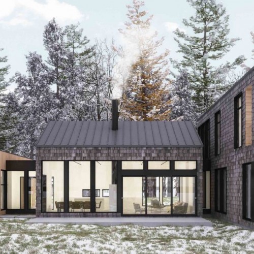 The New Classic inspiration #32 feels warm, yet contemporary, with clean lines, simple, esthetically pleasing finishes of grey shingles and natural wood, and fireplaces both inside the house and on the screened porch. A 2-car garage, plus family-friendly connecting spaces make this a home-away-from-home to be proud of, while the balcony patio and big guest room are perfect for entertaining.
