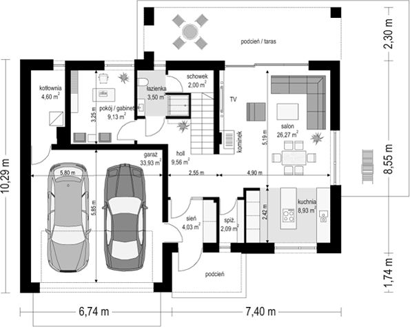 10. Garaż dwustanowiskowy33,93 m2