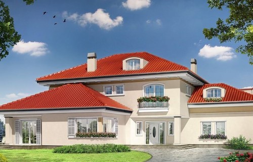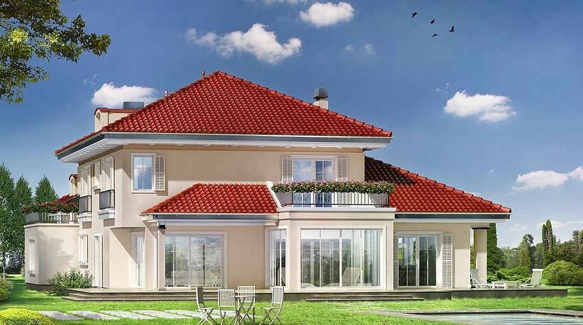 The Malibu house plan is an interesting proposition for people with a medium-wide plot. The house is characterized by an L-shaped body, which is very functional due to the clear division of the house into zones. An interesting element is the decorative bay window taken into account by the architect. In this design, the ridge runs parallel to the road, which is often referred to in zoning. The house has been designed to be freestanding. The design includes a double garage in the body of the building. It is also an excellent proposition for people looking for a house with an envelope roof, which is one of the most robust roof structures. The Malibu project is a two-story house, so we can afford a house with a larger area on a relatively small plot. The living area included in the project will surely satisfy people who like to enjoy time together with their family. It is made up of a functional kitchen that will delight every investor. Supporters of practical solutions will undoubtedly be pleased that there is also a place for a pantry. The day zone is also created by a spacious living room and dining room. Additionally, the living room has a fireplace, which gives the interior a unique atmosphere. The project includes one comfortable bathroom on the ground floor and two additional bathrooms on the first floor. The house has six comfortable bedrooms, which makes it an excellent choice for a family of 5-8 people. The space can also be used as a guest room or office. In addition to this, the house also has a utility room that you can use according to your needs. The terrace offers the possibility of contact with nature and is conducive to relaxation. In addition, the porch planned in the project will make it impossible for anyone to pass by this house. A winter garden planned in the house provides a comfortable rest in contact with nature. The house was designed in brick technology. the villa.