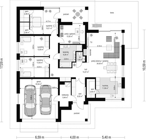 15. Garaż dwustanowiskowy33,34 m2