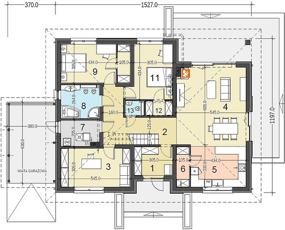 14. Wiata garażowa jednostanowiskowa