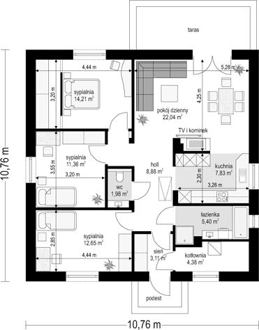 6. Pokój dzienny + jadalnia22,04 m2