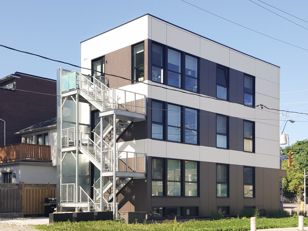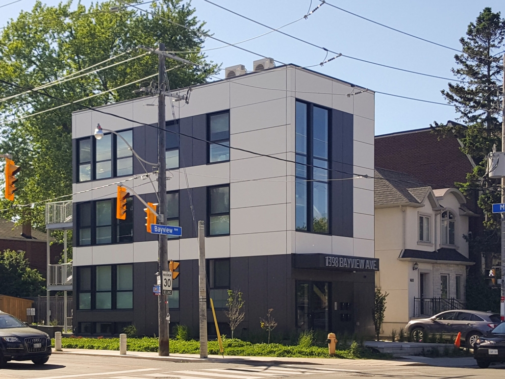 Located on a very narrow lot, this JNCN HOMES custom designed multi-residential building takes full advantage of all the natural light and environment. The 20’ wide building will have three residential units of 924 sq.ft. each on 3 levels and a fourth unit of 898 sq.ft. in the basement. All units have two bedrooms, a bathroom and an open-concept kitchen with living room highlighted by floor to ceiling windows.