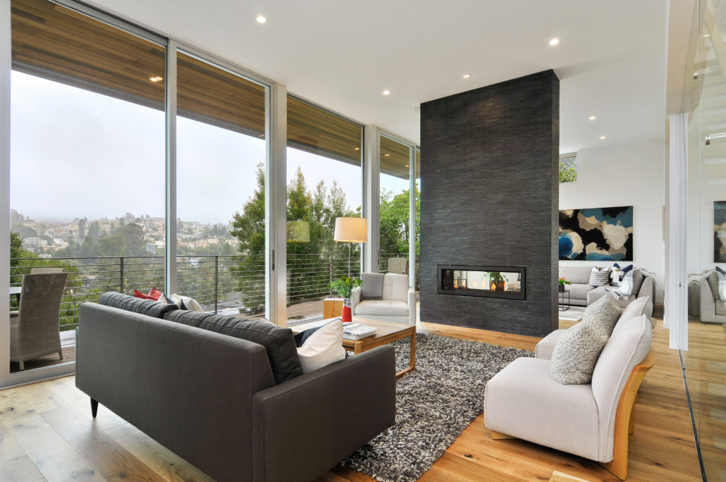 This stunning new home for sale at 6226 Acacia Avenue features bay and canyon views with convenient level-in living. 6226 Acacia is located in Upper Rockridge, a quiet, upscale neighborhood just minutes from Elmwood and Rockridge shops and restaurants.