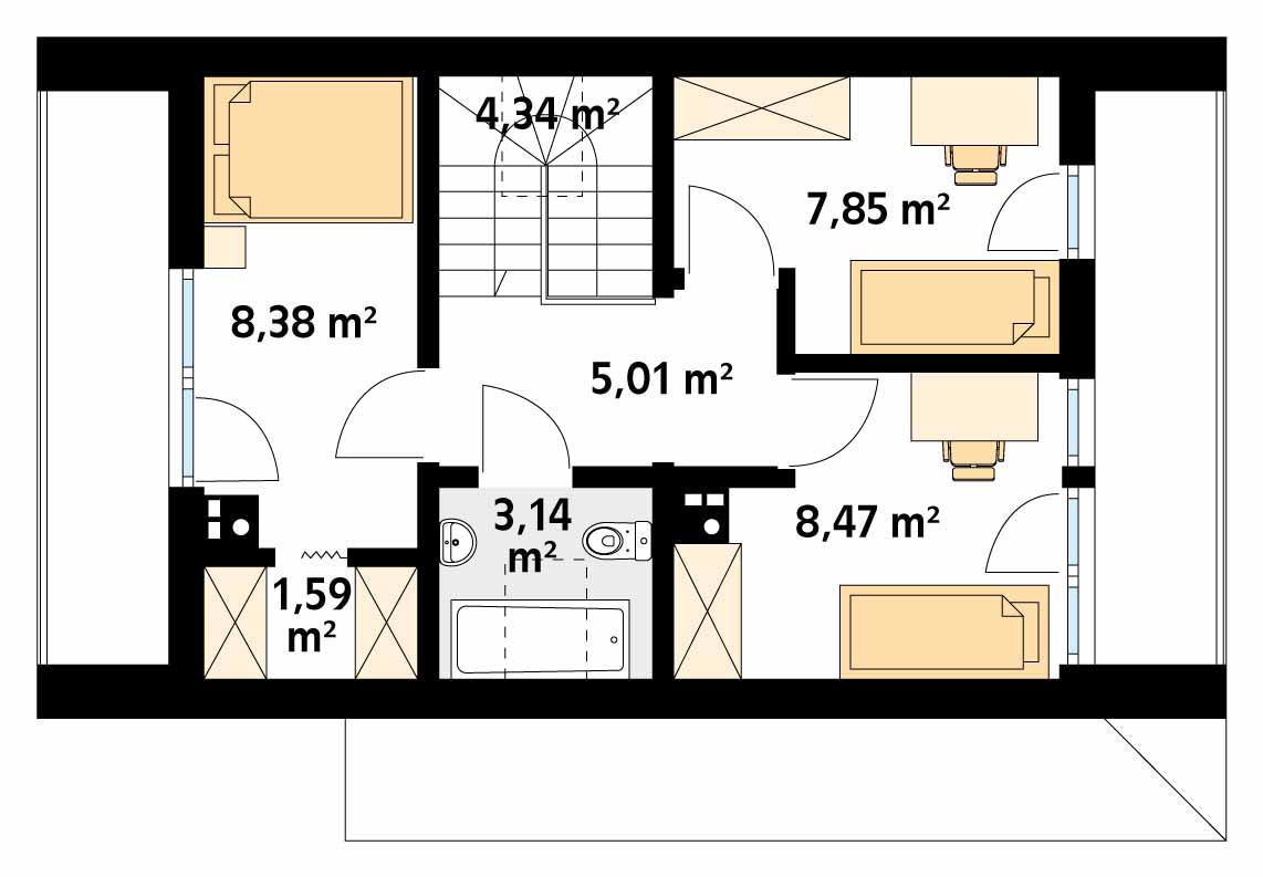 2. Pokój8,38 m2 (9 m2)