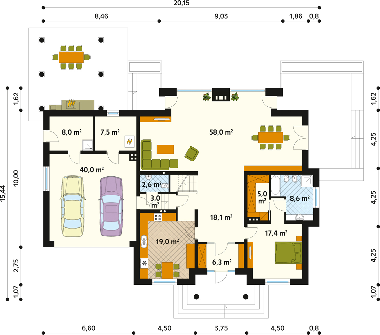 5. Pokój dzienny + jadalnia58 m2