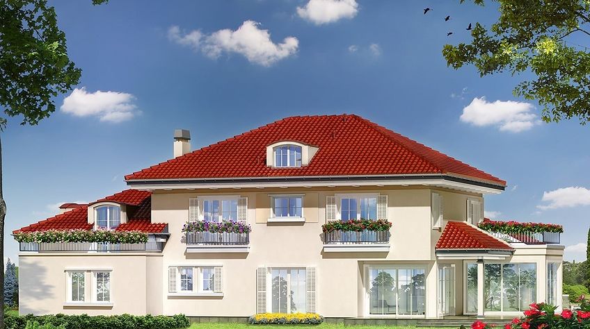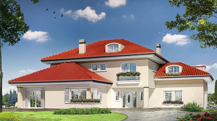 The Malibu house plan is an interesting proposition for people with a medium-wide plot. The house is characterized by an L-shaped body, which is very functional due to the clear division of the house into zones. An interesting element is the decorative bay window taken into account by the architect. In this design, the ridge runs parallel to the road, which is often referred to in zoning. The house has been designed to be freestanding. The design includes a double garage in the body of the building. It is also an excellent proposition for people looking for a house with an envelope roof, which is one of the most robust roof structures. The Malibu project is a two-story house, so we can afford a house with a larger area on a relatively small plot. The living area included in the project will surely satisfy people who like to enjoy time together with their family. It is made up of a functional kitchen that will delight every investor. Supporters of practical solutions will undoubtedly be pleased that there is also a place for a pantry. The day zone is also created by a spacious living room and dining room. Additionally, the living room has a fireplace, which gives the interior a unique atmosphere. The project includes one comfortable bathroom on the ground floor and two additional bathrooms on the first floor. The house has six comfortable bedrooms, which makes it an excellent choice for a family of 5-8 people. The space can also be used as a guest room or office. In addition to this, the house also has a utility room that you can use according to your needs. The terrace offers the possibility of contact with nature and is conducive to relaxation. In addition, the porch planned in the project will make it impossible for anyone to pass by this house. A winter garden planned in the house provides a comfortable rest in contact with nature. The house was designed in brick technology. the villa.