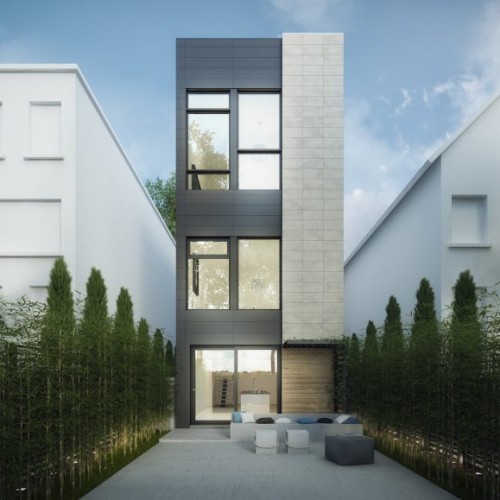 The tunnel of light surrounding the open staircase and the split-level configuration maximize the home’s space. There is a spare room/gym and a terrace on the street side. The backyard and op terrace is sheltered by a JNCN pergola for added privacy in an urban garden setting.
