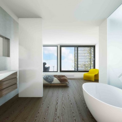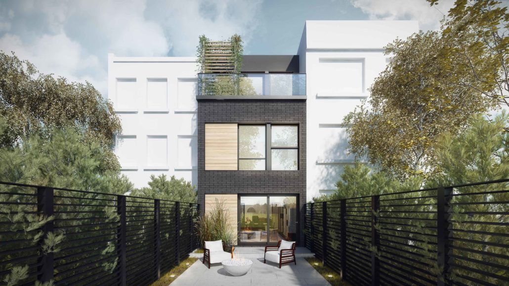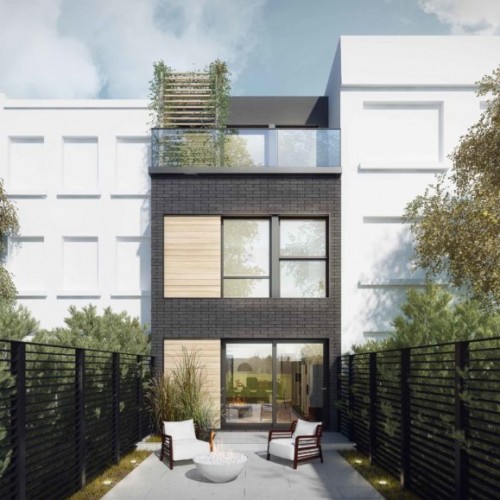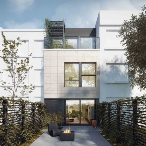 The tunnel of light surrounding the open staircase and the split-level configuration maximize the home’s space. There is a spare room/gym and a terrace on the street side. The backyard and op terrace is sheltered by a JNCN pergola for added privacy in an urban garden setting.