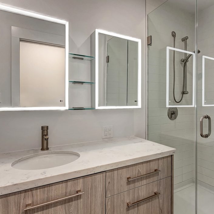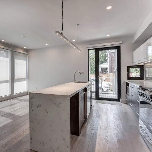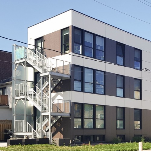 Located on a very narrow lot, this JNCN HOMES custom designed multi-residential building takes full advantage of all the natural light and environment. The 20’ wide building will have three residential units of 924 sq.ft. each on 3 levels and a fourth unit of 898 sq.ft. in the basement. All units have two bedrooms, a bathroom and an open-concept kitchen with living room highlighted by floor to ceiling windows.