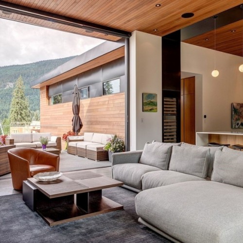 A recent addition to one of Whistler’s newest and most exclusive neighborhoods, this JNCN HOMES contemporary home has 4 bedrooms, 3.5 bathrooms, 2 bedroom suite and is the ultimate realization of resort living. Located on landscaped grounds on a quiet cul-de-sac, the southwest aspect provides views of Rainbow Mountain and maximum afternoon sun. Mountain lodge meets industrial design in the interior, a study in geometrical precision featuring custom oak cabinetry, hand cut basalt and artisan-crafted steel and glasswork. A disappearing wall of windows allow an abundance of natural light to permeate living spaces and an impressive array of home technology ensures year-round comfort and control. Zoned to allow nightly rentals, the home is ideally placed for enjoying Whistler’s lifestyle, with close proximity to the Valley Trail network, the championship greens of Nicklaus North Golf Course as well as lakes, shops, restaurants and Whistler Blackcomb ski lifts.